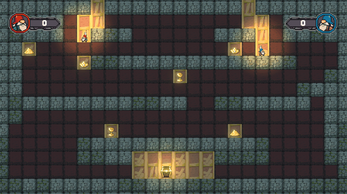 Each collected treasure gives you one point. The treasure chest at the bottom of each level is worth two points. Is the treasure chest collected by any one of the players the level ends immediately and the player with the most points wins.